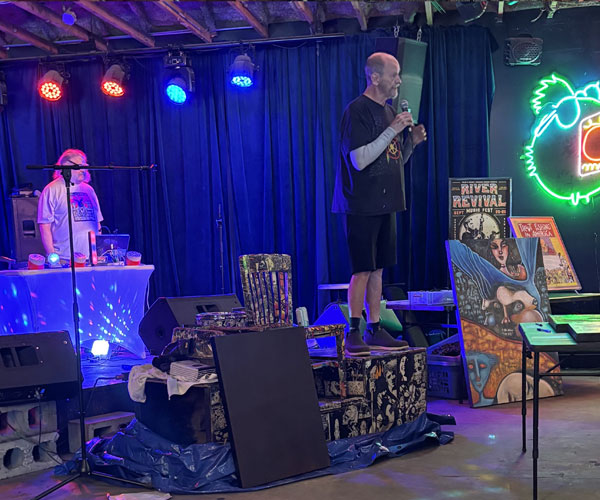 Houston Food Bank would like to thank the estate of Don Arnold and Dan Electro’s for the charity art auction on August 24 to benefit the food bank. Don was a long time collector of the work of Houston artist and musician Beans Barton, and his family auctioned off a large portion of his collection, with all proceeds to go to Houston Food Bank. The event was a rousing success, as you can see from some of the event photos.